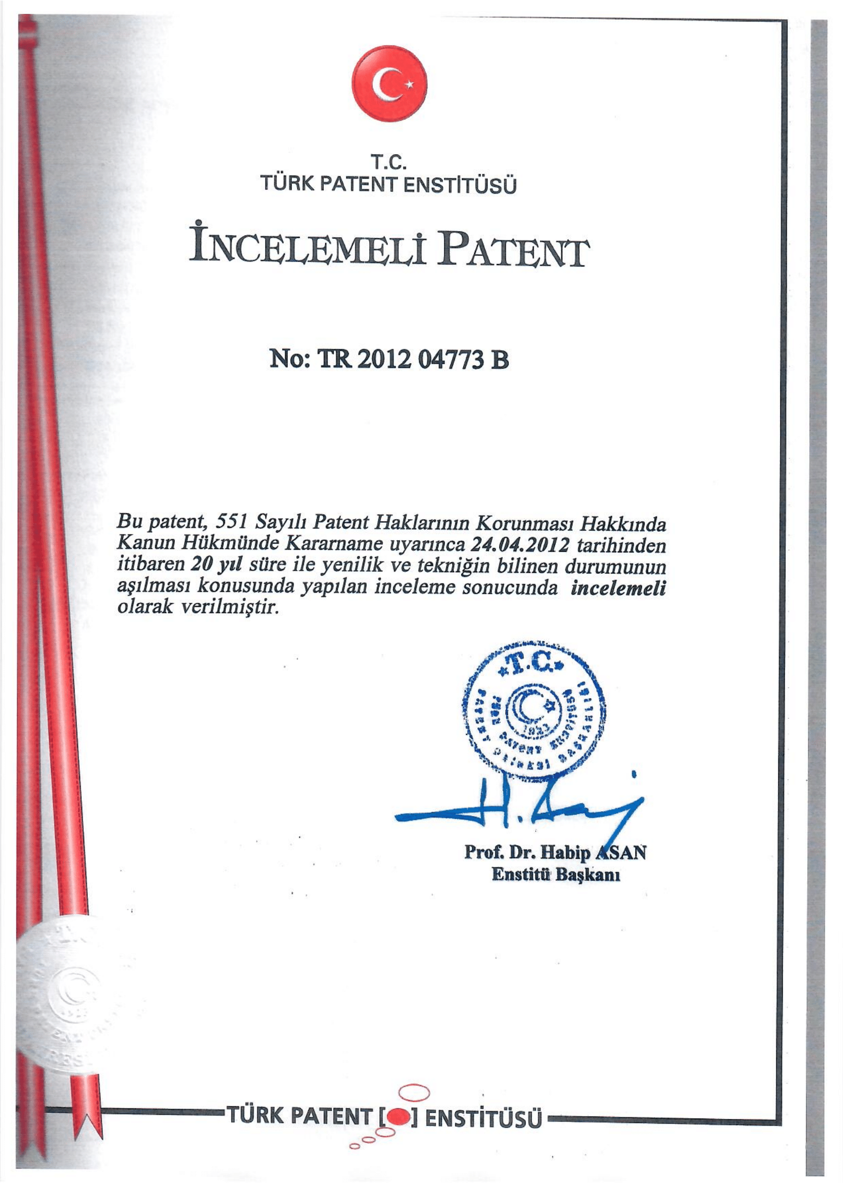Türk Patent Enstitüsü – İncelemeli Patentimiz – 2014